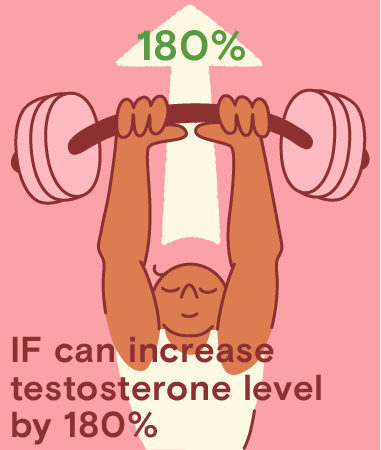 Responsible for muscle repair and gain. After a 24-hour-fast, the amount of human growth hormone (HGH), which is necessary for increasing muscle mass in men, can rise by up to 2,000% in men and 1300% in women. Testosterone is another hormone that’s needed to repair muscle fibers. It can increase by 180 per cent. Scientists agree that increased levels of hormones are optimal for building muscle.